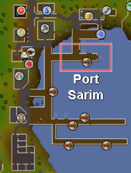 4. Head to Port Sarim and talk to the monks located at the north of the docks. Have them take you to Entrana. If you're trying to sneak weapons or armor aboard, they won't take you and you'll have to bank them.