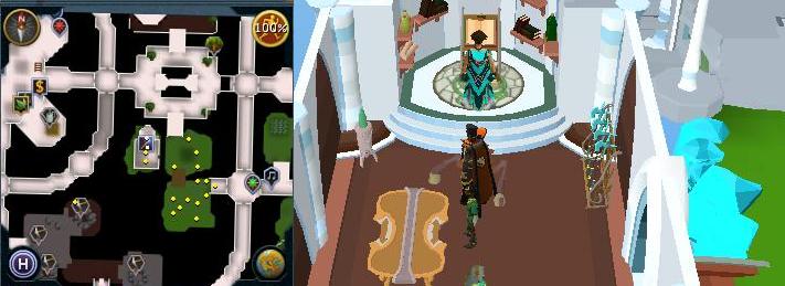 South-west area of the Ithell Clan district, inside the building with the harps. |